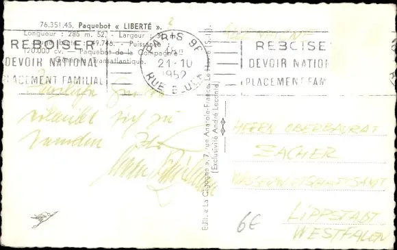 Zustand, siehe Scan, gelaufen, 1952 - ca 14 cm X 9 cm