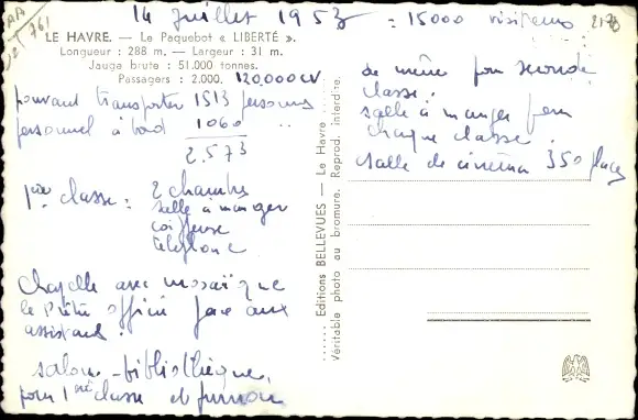 Ak Dampfschiff Liberte, CGT, French Line, Paquebot