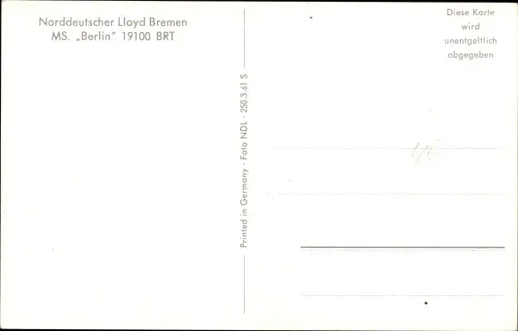 Ak Dampfschiff MS Berlin, Norddeutscher Lloyd