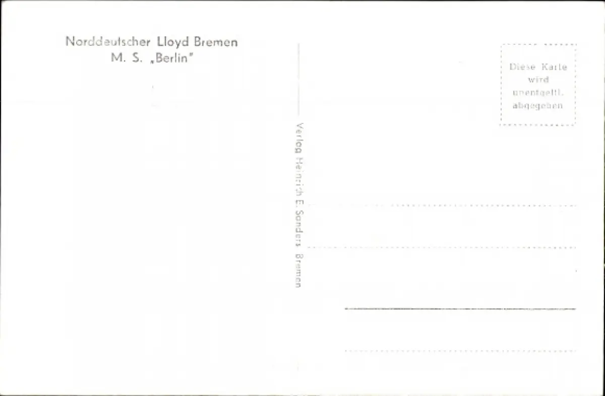 Ak Dampfschiff MS Berlin, Norddeutscher Lloyd Bremen, Ansicht Steuerbord