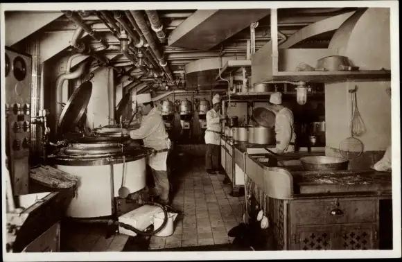 Ak Dampfschiff MS Monte Cervantes, Küche, Innenansicht, HSDG