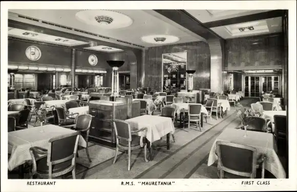 Ak Dampfschiff Mauretania, Restaurant, Cunard Line