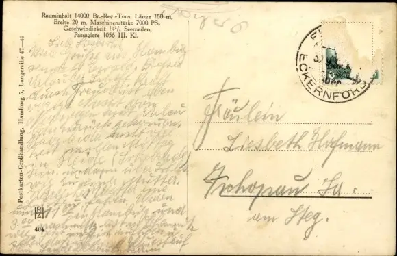 Ansichtskarte,Postkarte,Hafen,Schiffe,Boote,Dampfer,Boot,Dampfschiff,Schiff,Kahn,Lastkahn,Segelboot,Segelboote,Lastkähne,steamer,HSDG,Hamburg, Südamerikanische, Dampfschifffahrts, Gesellschaft
