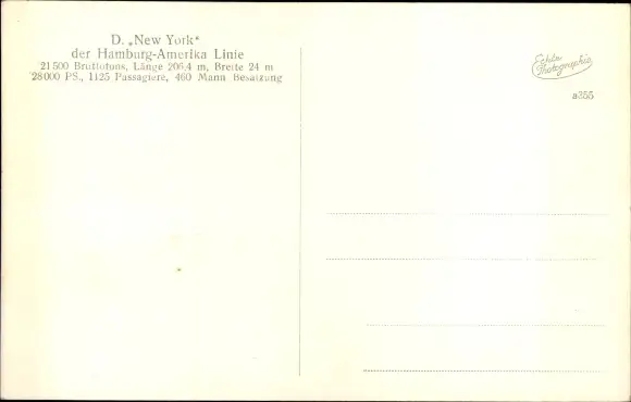 Ak Dampfschiff New York, HAPAG, Dampfer