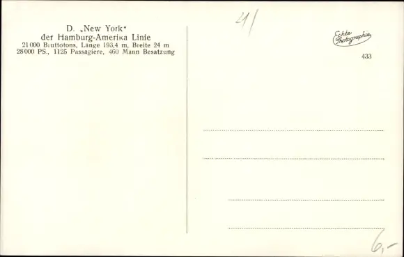 Ak Dampfschiff New York, HAPAG, Dampfer