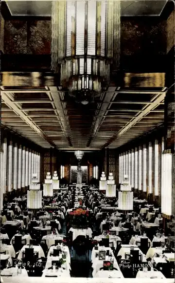 Ak Dampfschiff Normandie, CGT, French Line, Innenansicht