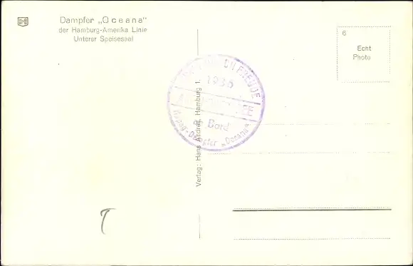 Ak Dampfschiff Oceana, Innenansicht, HAPAG, Unterer Speisesaal