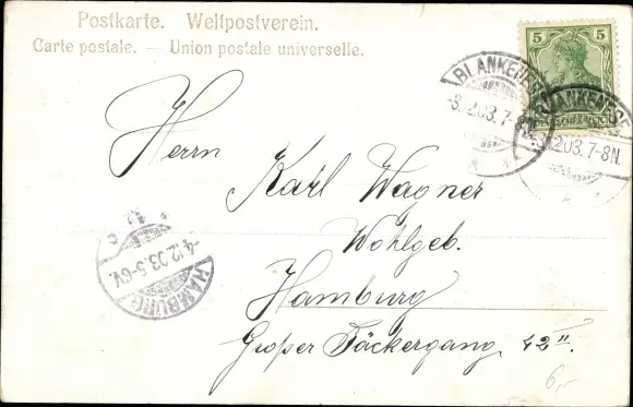 Zustand, siehe Scan, gelaufen, 1903 - ca 14 cm X 9 cm