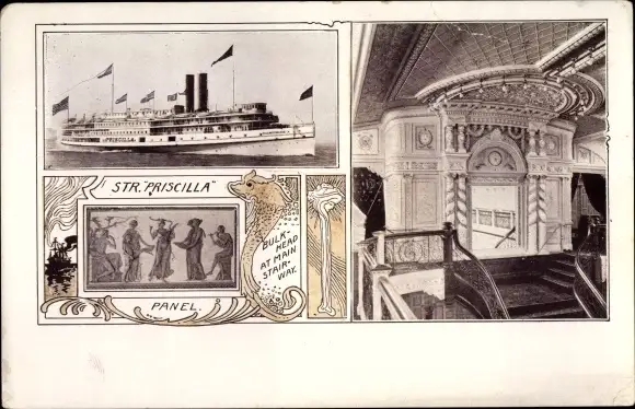 Ak Dampfschiff Priscilla, Fall River Line, Innenansicht