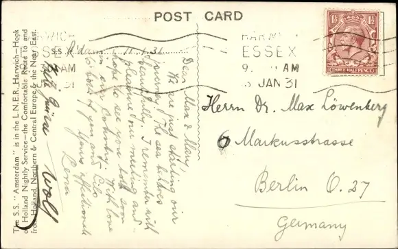 Ak Dampfschiff SS Amsterdam, LNER, Fährschiff