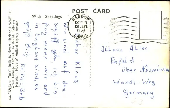 Ansichtskarte, Postkarte, Hafen, Schiffe, Boote, Dampfer, Boot