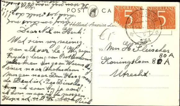 Zustand, siehe Scan, gelaufen, 1954 - ca 15 cm X 9 cm