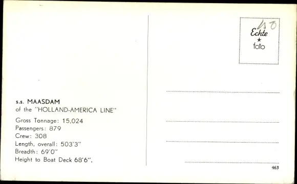 Ak Dampfschiff SS Maasdam, Holland America Line, HAL