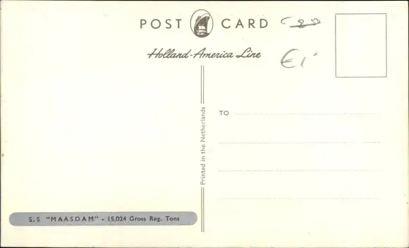 Ak Dampfschiff SS Maasdam, Holland America Line, HAL