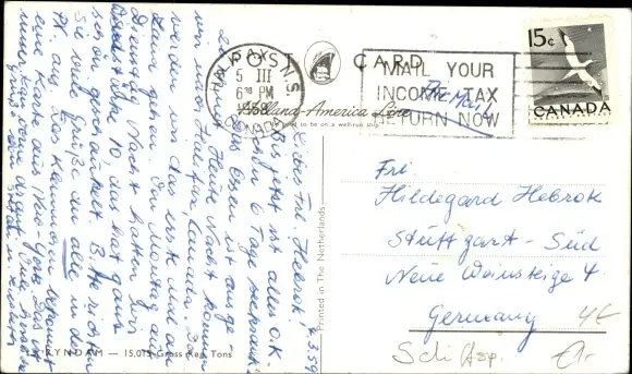 Ak Dampfschiff SS Ryndam, HAL
