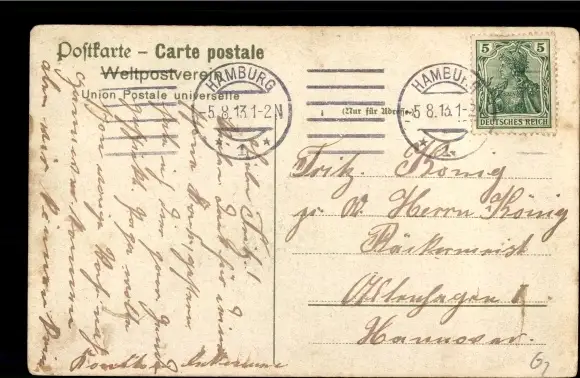 gelaufen 1913, Ecken bestoßen, leicht fleckig, sonst guter Zustand
