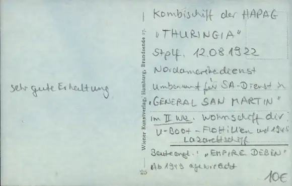 Ak Dampfschiff Thuringia, HAPAG, Ansicht Steuerbord