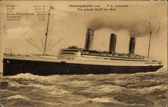Ak Dampfschiff Vaterland in voller Fahrt, HAPAG
