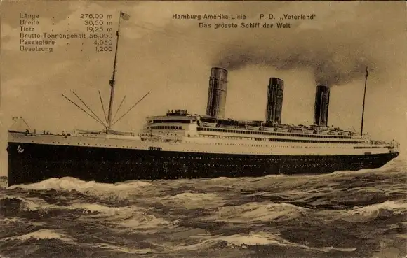 Ak Dampfschiff Vaterland in voller Fahrt, HAPAG
