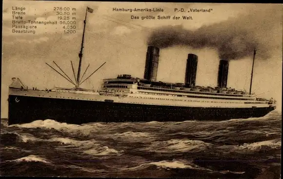 Ak Dampfschiff Vaterland in voller Fahrt, HAPAG