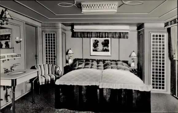 Ak Dampfschiff der Hamburg Amerika Linie, HAPAG, Innenansicht, Luxuskabine