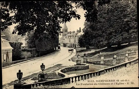 Ak Dampierre-Yvelines, Fontaine du Chateau, Kirche