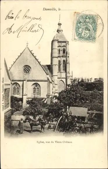 Ak Damville Eure, Eglise, vue du Vieux Chateau