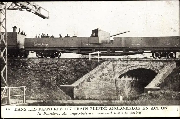 Ak Dans les Flandres, Un train blindé Anglo Belge en action, Eisenbahngeschütz