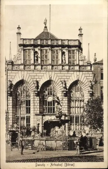 Ak Danzig, Partie am Artushof Börse, Vorderansicht
