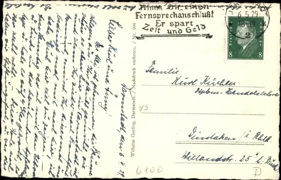 Zustand, siehe Scan, gelaufen, 1929 - ca 15 cm X 9 cm