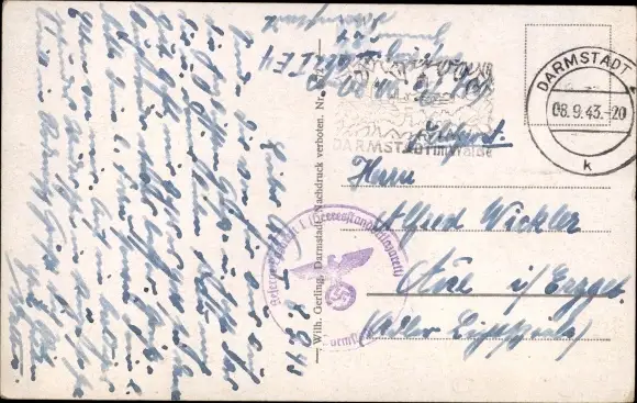 Zustand, siehe Scan, gelaufen, 1943 - ca 14 cm X 9 cm