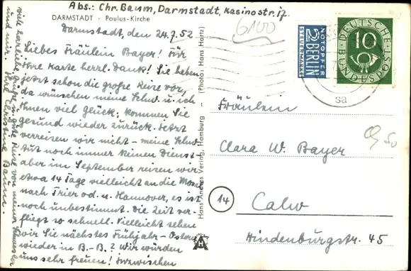 Zustand, siehe Scan, gelaufen, 1952 - ca 9 cm X 14 cm