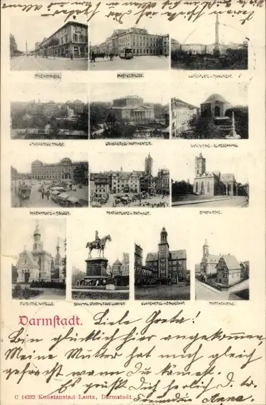 Ak Darmstadt in Hessen, Platz, Kirche, Postgebäude