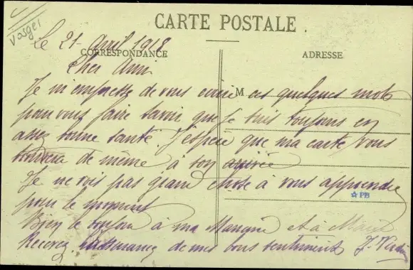 ungelaufen, datiert 1918, Rückseite beschrieben, sehr guter Zustand