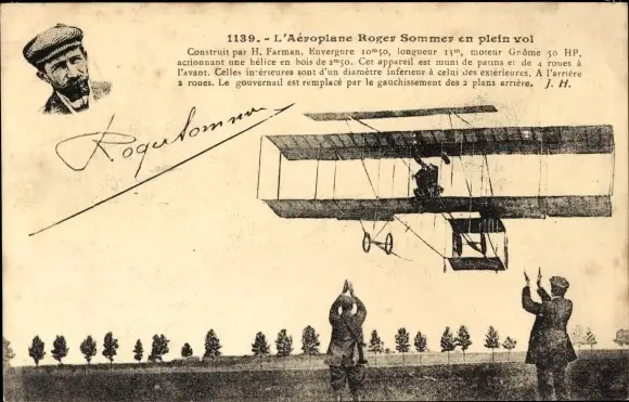 Ak Das Flugzeug Roger Sommer im vollen Flug, Farman Biplane