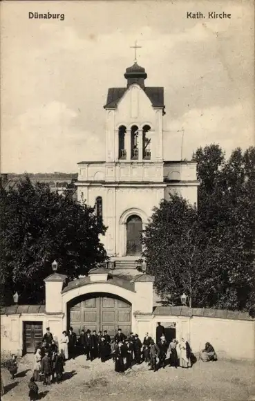 Ak Daugavpils Dünaburg Lettland, Blick auf eine Kirche, Messgang