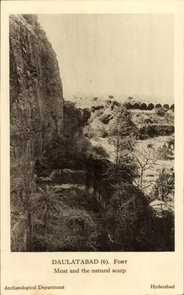 Ak Daulatabad Indien, Fort Moat, natural scarp