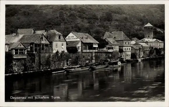 Ak Dausenau an der Lahn, Teilansicht mit schiefem Turm