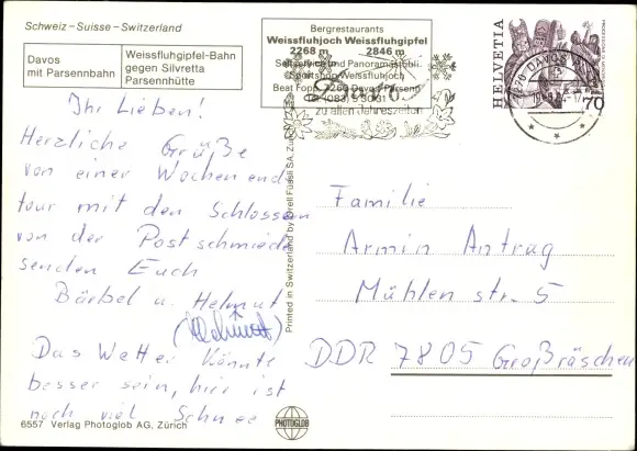 Ak Davos Kanton Graubünden, Parsennbahn, Weissfluhgipfelbahn, Silvretta, Parsennhütte