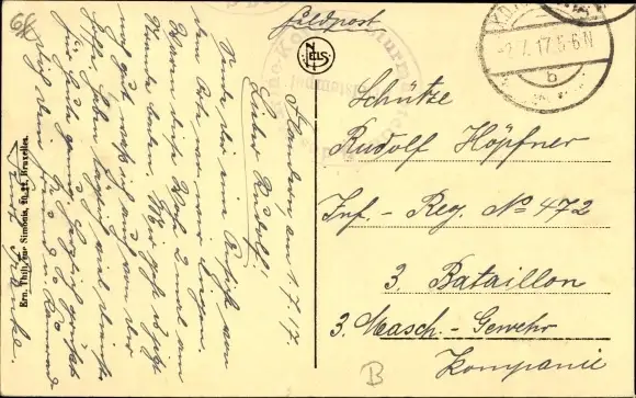 Zustand, siehe Scan, gelaufen, 1917 - ca 14 cm X 9 cm