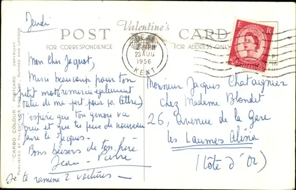 Zustand, siehe Scan, gelaufen, 1956 - ca 14 cm X 9 cm