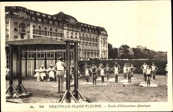 Ak Deauville La Plage Fleurie Calvados, Ecole d'Education physique