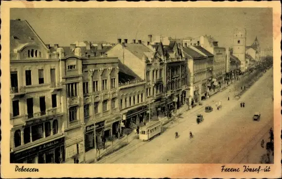 Ak Debreczen Debrecen Debrezin Ungarn, Ferenc Jozsef ut, Straßenbahn
