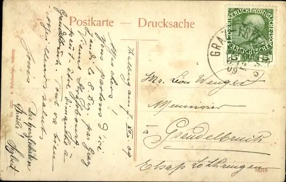 Zustand, siehe Scan, gelaufen, 1909 - ca 14 cm X 9 cm