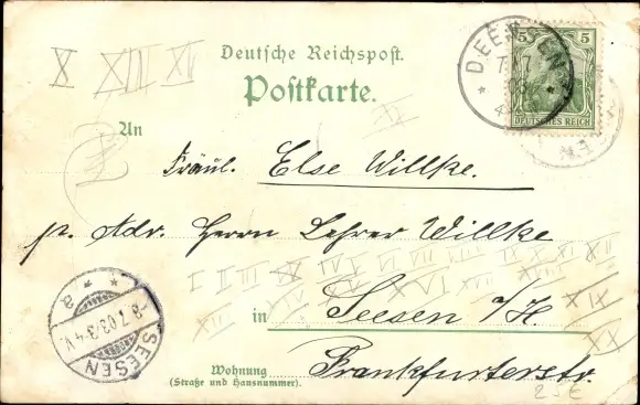 gelaufen 1908, Eckknicke, sonst guter Zustand - Inh: C Meier