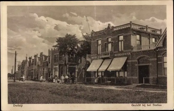 Ak Delfzijl Groningen, Gezicht bij het Station