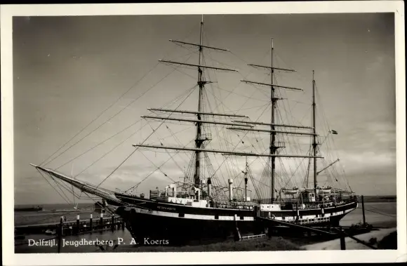 Ak Delfzijl Groningen, Jeugdherberg P. A. Koerts, Segelschiff