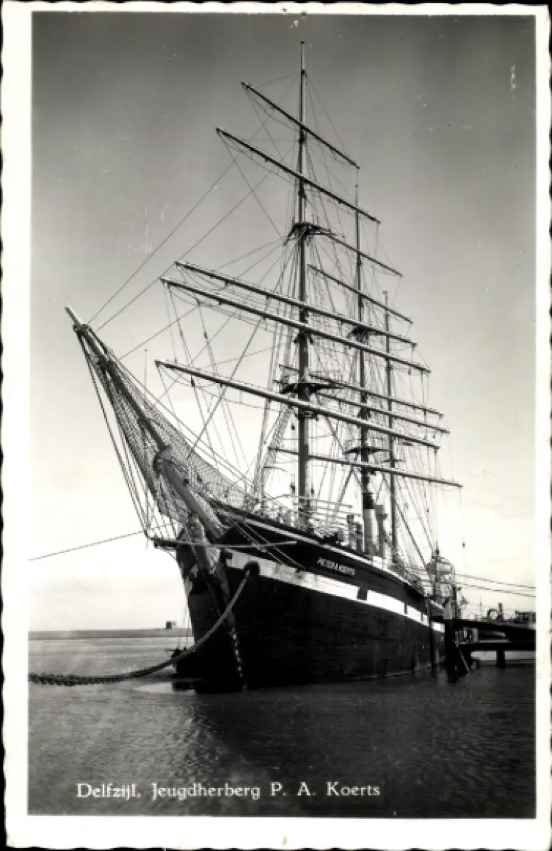 Ak Delfzijl Groningen, Jeugdherberg P. A. Koerts, Segelschiff
