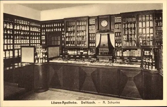 Ak Delitzsch in Sachsen, Löwen Apotheke, Innenansicht