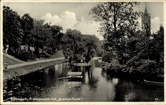 Ak Delitzsch in Sachsen, Promenade, Breiter Turm